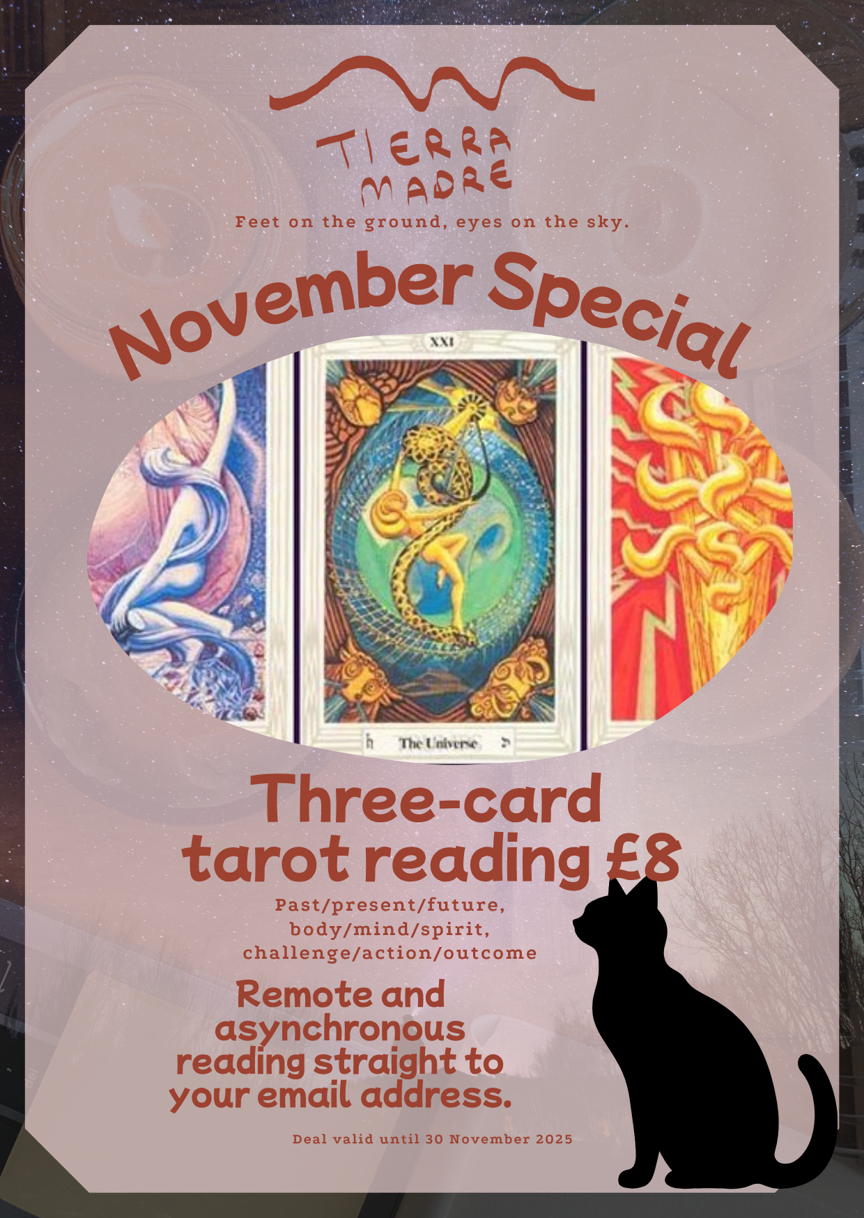 I'm extending the Samhain tarot reading special to the entire month of November, but I'm only announcing it here so I don't embarrass myself on Instagram and so the algorithm doesn't tell me "no, we won't let you promote yourself, but look at all these readers who are better than you."