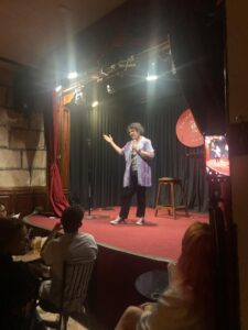 Últimamente también he estado practicando hacer comedia de stand up. Ha sido muy divertido. A veces solo nos queda reír.